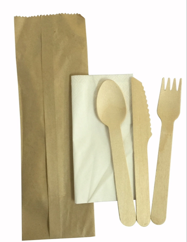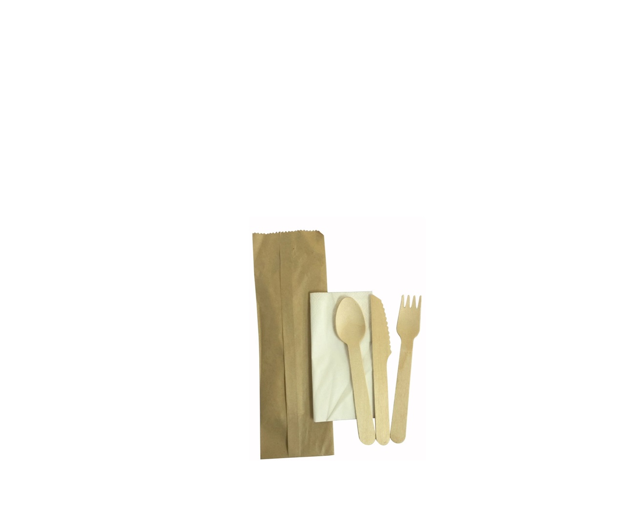 CUTLERY SET 4in1 - WOODEN + NAPKIN (CTN1X500PCS)